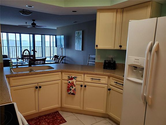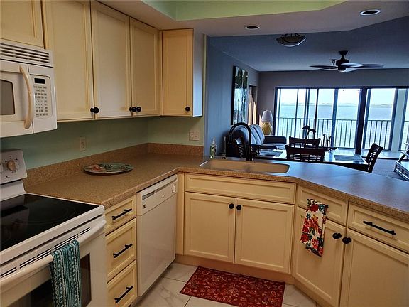 FANTASTIC riverfront views from every room in this 2/2 condo. Tastefully furnished and well maintained surroundings. Large porch offers stunning panoramic views. Covered underground parking and elevator offers easy access to second floor. Community offers many amenities including community pool, gym, golf, and marina day dock. All room sizes approximate and subject to change.