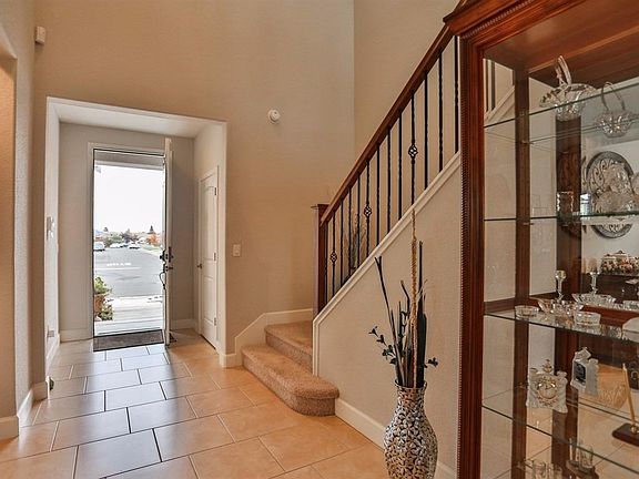 3 yrs new solar equipped home by Lennar located near a cul-de-sac. Vaulted ceiling entry w/hard surface tiled flooring throughout downstairs. Large formal Dining Rm perfect for holiday gathering. Modern kitchen features granite countertop, built-in S/S appliances & European-style cabinets that open to Family Rm. & nook area. One Bdrm & full Bath downstairs ideal for guest. Master & 2 other Bdrms upstairs plus a large bonus room. Beautiful landscaped backyard w/covered patio ready to move into!
