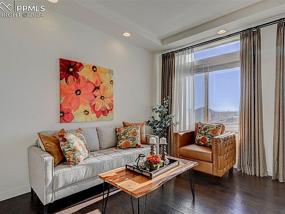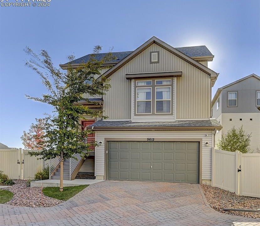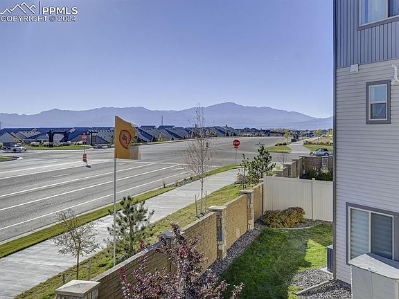 Rare Unobstructed Views of Pikes Peak! Desirable Banning Lewis Ranch has a big inventory of houses to chose from, why this one: BECAUSE The location in the subdivision not only boasts stunning mountain views it is on the edge of the community which offers ease of access and openness instead of backing to multiple neighbors. Location, Location, Location and it offers multiple upgrades and distinct offerings. This luxurious three story home features three spacious bedrooms, four modern bathrooms, a two-car garage, and ample stylish touches throughout. The living room, dining room open floor-plan has a wall of windows that floods the house with natural sunlight. The Chef's Kitchen boasts an extra large center island, stainless steel appliances, and convenient pantry for prep and entertaining. Guests can take in the sunset from the extended back deck that is like none other. The master retreat has a generous walk in closet, a private bath with double sinks of granite countertop and large shower to pamper. Upstairs is a plethora of possibilities: two bedrooms and a full bath to use however the new owner prefers. Lower level has access to the fully fenced yard for pets and people to enjoy, plus huge flowing family room that is divided by a guest half bath. Carpeted and finished space under the stairs can be utilized as a playhouse, pet sanctuary, or additional storage. In addition to its exceptional design and breathtaking surroundings, this house also offers access to various clubhouse and community amenities that enhance the overall living experience. Come take a look to be a part of something special!