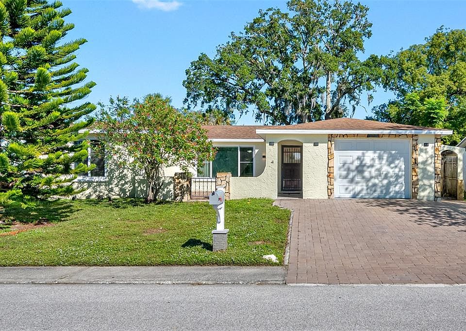 One or more photo(s) has been virtually staged. *** Under Contract - Backup Offers Wanted! *** Seller will pay up to $5,000 of buyer's closing costs and/or prepaid expenses! This MOVE-IN READY 2 bedroom, 2 bathroom, 1-car garage BLOCK construction 1,602 sq. ft. home has an open floor plan, tile flooring throughout and HURRICANE IMPACT windows on many windows. You'll love the spacious open kitchen with breakfast bar, ample cabinetry and counter space. All appliances stay with the home, including the washer and dryer. Shingle roof is only 7 years old, AC is 5 years old, water heater is 3 years old and garage door/opener is 2 years old. Back patio with built-in kitchen and grill. Yard is completely fenced, beautifully landscaped and very private. No HOA! Current flood zone X! Driveway is gorgeous brick pavers. Check out the pictures!