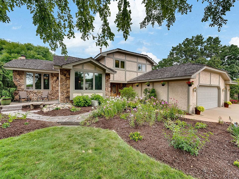 Truly charming custom built 4+ level home situated nicely on a cul de sac in sought after W Bloomington! Great curb appeal with tudor style flair, beautiful landscaping & well maintained yard. Spacious/welcoming foyer. Main level fam room is open to kitchen, has beautiful built-ins/fireplace plus 1/2 bath & walks out to large elevated deck. Deck with screen porch & panoramic views of trees & pond. Custom kitchen with granite countertops, large island & informal dining. Good sized formal LR & DR for entertaining. Addition includes huge 3+ stall garage (fits 4 cars) & laundry/mud room! 3 BR's up including master suite (master and common baths completely renovated). Large lower level amusement/rec room with custom corner bar and built-ins walk out to patio/private back yard. Lowest (5th) level finished with 2 egress windows for 4th BR/Office/workout room/etc. (also rough-in for 4th bath). Walk to Sunrise/Bloom Ferry Rd Parks & Highland Lake/Park Reserve! See supplements for updates.