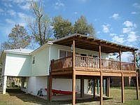 Square footage from tax records - buyer to verify. Originally built in 1969, was rebuilt in 1995. Covered, elevated deck, covered lower deck, hot water tank-replaced 2005, new heat pump 2009, new dishwasher 2007, new stove 2006, new roof 2006, new pump and well 2005, new front pilings 2005, new plumbing 2006, new electrical wiring 2006, new doors and flooring 2007, painted 2007.
