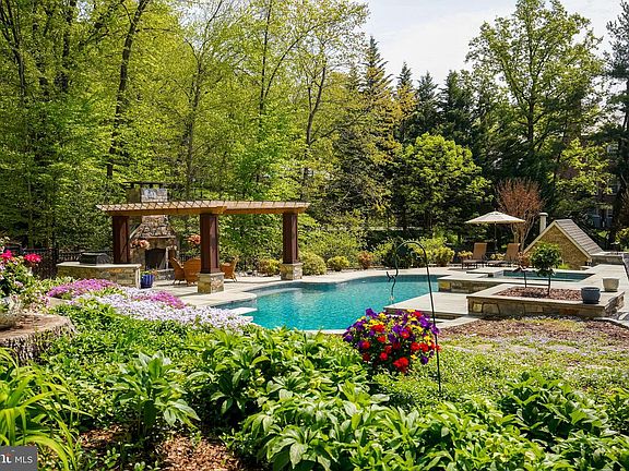 Fabulous NEW PRICE 4/23! Potomac Village: Pristine, fully updated custom home with more than 9,000 square feet of living space. Two-story marble foyer, generous library/study with custom bookshelves, family room with masonry fireplace, formal living and dining rooms, gourmet kitchen with custom cabinets, granite counters, and new stainless appliances including Wolf cooktop and double wall ovens. New spacious laundry and craft room that serves as a mud room. Second level owner~s suite has enormous custom walk-in closet, natural stone and granite master bath spa with copper soaking tub and separate shower, plus infrared sauna. Four additional spacious bedrooms and 2 fully upgraded bathrooms. Walkout lower level includes a large wet bar, temperature controlled custom wine cellar housing more than 1,000 bottles, Fitness Center, and 2 Bonus rooms each with upgraded full baths. Lower and Upper level flagstone patios, spectacular in-ground heated salt water pool and spa, pergola with stone fireplace and custom grilling center, pond and separate pool house; lighted Sports Court~ , and 4-car garage parking. New windows throughout and new HVAC system. Perfect for family and entertaining: no detail has been overlooked!
