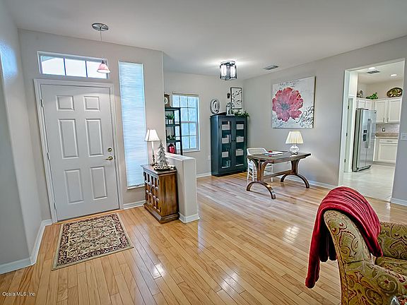 DON'T MISS THIS ONE! A GEM! Sparkling open design Madeira model, wood floors and tile throughout. 2,008 sq.ft. of living space, 10x34 Florida Room (Lanai) under heat and air. (2016) stainless appliances, oodles of cabinets, granite counters. Cordless Hunter Douglass blinds throughout, Irrigation well (save on water bills), whole house filter system. Paver Patio off Florida room surrounded by Hacienda walls and power Sunseeker awning. HVAC replaced in 2010, epoxy painted floor in 2 car garage, pull down attic with floored over storage. Designer driveway and walk-way, retractable screen on garage. Enjoy Florida living in this wonderful home! Minutes to Fitness Center, conservation trails, indoor heated pool.