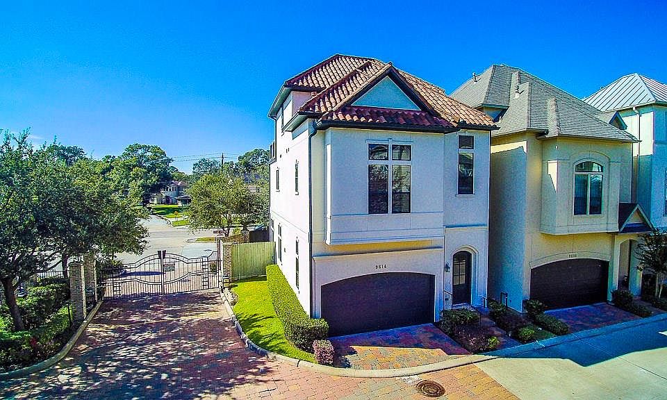 Pristine, elevator capable, patio home on corner lot in highly sought, after gated Pemberton Crescent Community near Medical Center! This open and inviting floorplan boasts 4 bedrooms, 3.5 baths, solid oak hardwood flooring, 1st- floor living, tray ceilings, and an abundance of windows for natural light! Kitchen features Bosch SS appliances, granite counters, and an island. The master suite offers dual walk-in closets, a bonus room great for an office, and a luxurious bath featuring a whirlpool tub with dual vanities. Relax outdoors on the rooftop terrace or the fenced backyard. ZONED BELLAIRE HIGH SCHOOL! Call Today as this Mediterranean gem won't last long!