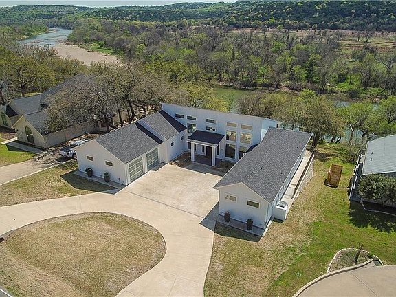 Light Infused Brazos River Front Gem! This Gorgeous Home will Dazzle You at the Elegant Entry with Tree Top Views of the River & Expansive, Open Structure of Glass and Porcelain Tile Floors. Living Features 80 in. Flat Screen with Sonos Sound Mounted Above the Sleek Electric Fireplace, Flanked by Built-ins. Kitchen Features 2 Self Cleaning Ovens, Induction Cooktop, Island made for Entertaining & Walk in Pantry. All 3 Bedrooms are En Suite with Walk-in Closets. Other Features include LED Lights, 2 Water Heaters, 2 Zoned HVAC Units, 3 ft x 8 ft Interior Doors, Light Filled Spacious Garage Plus Separate Golf Cart Garage. Enjoy Fishing or Lounging at the Fire Pit from the River's Edge. This is One of a Kind!