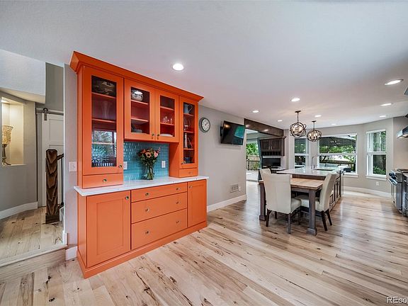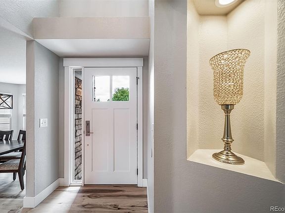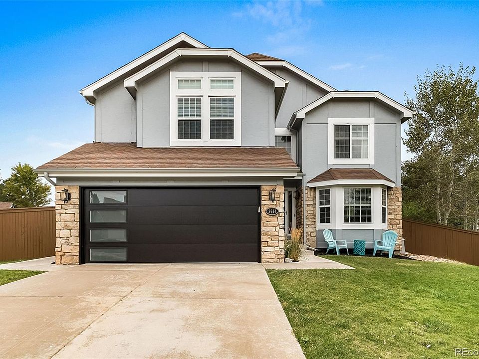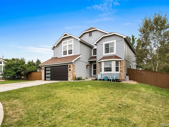 Explore this stunningly updated and renovated two-story residence nestled on a sought-after corner lot within a peaceful Highlands Ranch cul-de-sac. Upon entry, you'll be greeted by plentiful natural light and an airy, open layout that seamlessly combines comfort with elegance. The main level showcases a chef’s gourmet dream kitchen featuring quartz countertops, custom cabinets, and high-end Thermador appliances, flowing effortlessly into a spacious living area with vaulted ceilings and a cozy fireplace—perfect for everyday living and entertaining. Elegant hickory hardwood flooring runs throughout the main floor, enhancing the warm and sophisticated ambiance. The versatile main-floor bedroom serves well as a guest room or office, adjacent to a convenient updated bathroom. Upstairs the gorgeous hardwood floors continue and a generous primary suite offers a stunningly remodeled 5 piece bathroom and a large walk-in closet. Two sizable bedrooms, one with its own walk-in closet, share a stylish full bathroom, while a spacious loft can be used as a playroom, office, or lounge area. The fully finished basement is dedicated to relaxation, entertainment, and fitness, featuring a sleek bar, a large recreation/media room, and a dedicated area for strength training/cardio, and a fifth bedroom. Step outside to a private large fenced in backyard retreat with an expansive deck landscaped to create privacy, and ample space for gatherings or peaceful evenings. Recent updates exceeding $200K include the removal of a wall in the kitchen to create very open large kitchen and eating space, fresh interior and exterior paint, a new garage door, new flooring and new carpet in the bedrooms—making this home truly move-in ready and turn key. Located within walking distance to Eagle Ridge Elementary and Timberline Park, with easy access to C-470, I-25, and just five minutes from shopping and restaurants at Park Meadows Mall. Very clean, easy to schedule and show.