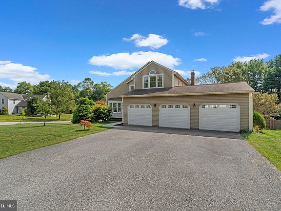 Elegant Colonial residence offering 5,104 total square feet, 4 bedrooms, 4 full baths, and a 3-car garage, beautifully set on a landscaped half-acre in desirable Bounty Vista. The bright and open main level welcomes you with gleaming hardwood floors that flow from the grand two-story foyer into the living room with soaring vaulted ceilings, the formal dining room accented by a statement chandelier and chair railing, and the spacious family room. A cozy brick-surround wood-burning fireplace anchors the family room, complemented by exterior access and a convenient cabinet sink area. A pass-through window with a breakfast bar connects to the updated eat-in kitchen, featuring stainless steel appliances, abundant cabinetry, and a cheerful breakfast area with a bay window and deck access. A main level bedroom with plush carpet, double closets, and access to a recently remodeled full bathroom adds flexibility to the floor plan. Upstairs, the loft offers a perfect retreat for reading or relaxing. The luxurious primary suite includes a sitting room with a custom closet organization system and a private bath with spa-like finishes, including skylights, a jetted soaking tub, and a dual-sink vanity. Two additional bedrooms share a bath. The fully finished walk-out lower level expands the home’s living space with a generous recreation room featuring a built-in bookcase and storage closets, versatile bonus rooms including one with a walk-in closet, a full bathroom, and unfinished space with laundry facilities. Outdoors, a composite deck overlooks the private, fenced backyard. A covered patio beneath the deck extends into an open patio area, offering multiple spaces for outdoor dining or lounging. Thoughtful landscaping, including a tomato garden and expansive green space, creates a peaceful setting ideal for entertaining.
