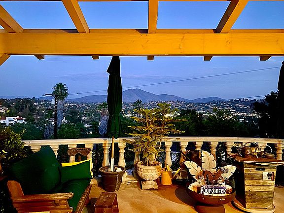 Perched atop the hill just below Mount Helix with Balustrade Pedestal surrounding the outside garden area looking out at San Miguel Mountain, makes for spectacular sunrise or sunsets panoramic views. San Miguel Mountain is a mountain located in Chula Vista, California. It is 2,567' high, and is the 84th highest peak in San Diego County. Because San Miguel is "the highest point close in to the San Diego metro area" it has been home to radio and TV transmitters since the 1960s. It is a majestic backdrop as you walk in the front door looking out the large picture window.