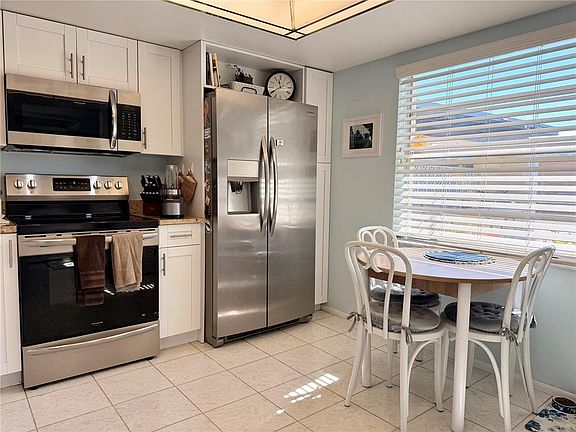 Welcome to Seven Springs Golf & Country Club, a vibrant and active community that is not a 55+ neighborhood. The location is outstanding—about 30 minutes from the international airports in Tampa, Clearwater, and St. Petersburg. The community offers excellent amenities, including two pools (an adult pool and a large heated family pool), a workout room, clubhouse restaurant, and two premier golf courses. This is a very desirable end-unit Heritage model with a spacious outdoor patio and plenty of natural sunlight throughout. The unit was fully renovated about five years ago and features 2 bedrooms and 2 bathrooms, soft-close cabinets and drawers in the kitchen and baths, stainless steel appliances, tile floors in the wet areas, wood-look flooring throughout, and granite countertops in both the kitchen and bathrooms. The primary bathroom includes dual sinks and a stylish countertop storage cabinet. The home also includes a laundry closet and a pantry for added convenience. Two pets are allowed. This community has one of the lowest golf and country club HOA fees in the area, which covers the 24-hour guard gate, cable TV, internet, water, sewer, trash, insurance, pest control, reserves, exterior maintenance, grounds maintenance, and management. It’s also an easy and beautiful walk to the clubhouse and restaurant.