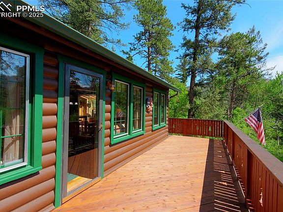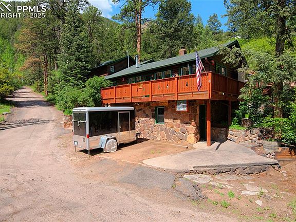 This cozy home is the perfect mountain home from being tucked in to the landscape with scrub oak & pines around you, to the feeling that your above it all, in a tree house. In the front door the fireplace greets you and pulls the space all together. Lots of windows bringing in sunshine and views. The knotty pine and beautiful hardwood floors are what every one looking in our cool Colorado mountains wants in their Colorado mountain home. We have it... There are 3 bedrooms or different options as my sellers have tried some in the last 28 years! Up against the mountain this home stays cool in the, summer and warm in the winter. This is the perfect location to get to Colorado Springs or go West to Woodland Park, the roads are very well maintained by El Paso County. I say here 3 beds but if a person were to chose it could be 4 beds and no Family room. You have choices in this sweet little home! There is plenty of space around the house to plant some pansies, nice off street parking toward the South end of the property and a big bonus is a huge pile of firewood ready for a cozy winter fire.