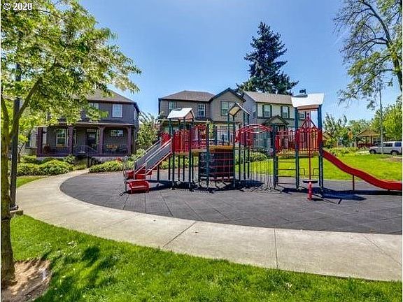 Beautiful 3b/2.1ba with bonus 4th room! This lovely, well-maintained home is on the PARK! Covered front patio and attached 2-car garage with lots of storage. Main floor w/gorgeous hardwoods and a cozy gas fireplace. Large primary bedroom w/vaulted ceilings and ensuite walk-in closet/bath. New vinyl plank flooring on upper level bedrooms. Spacious rear outdoor living patio w/fire pit. Fenced dog run w/doggie door. Easy 15 min to downtown & PDX, near St. Johns & Kenton. Open Sunday 12-2! [Home Energy Score = 8. HES Report at https://rpt.greenbuildingregistry.com/hes/OR10143617.pdf]