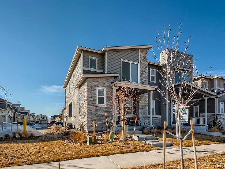 This 2-story modern and newer duplex in the East point community offers an open layout with A lot of natural light, The beautiful kitchen has wight quartzites, a gas range oven, ss Appliances with a newer smart refrigerator and large pantry! Easy to maintain Luxury vinyl plank flooring and upgraded lighting throughout the main level, the kitchen also facing sliding window to a big covered patio, Upgraded carpet leads upstairs to owner's suite with walk-in closet. the bathroom includes dual sinks with a walk-in shower. the 3rd bedroom/guest room is separated from the master for more privacy, conveniently accessible washer/dryer upstairs! Attached 2 car garage with an additional side door and window for more light. This Duplex includes paid off solar sestym