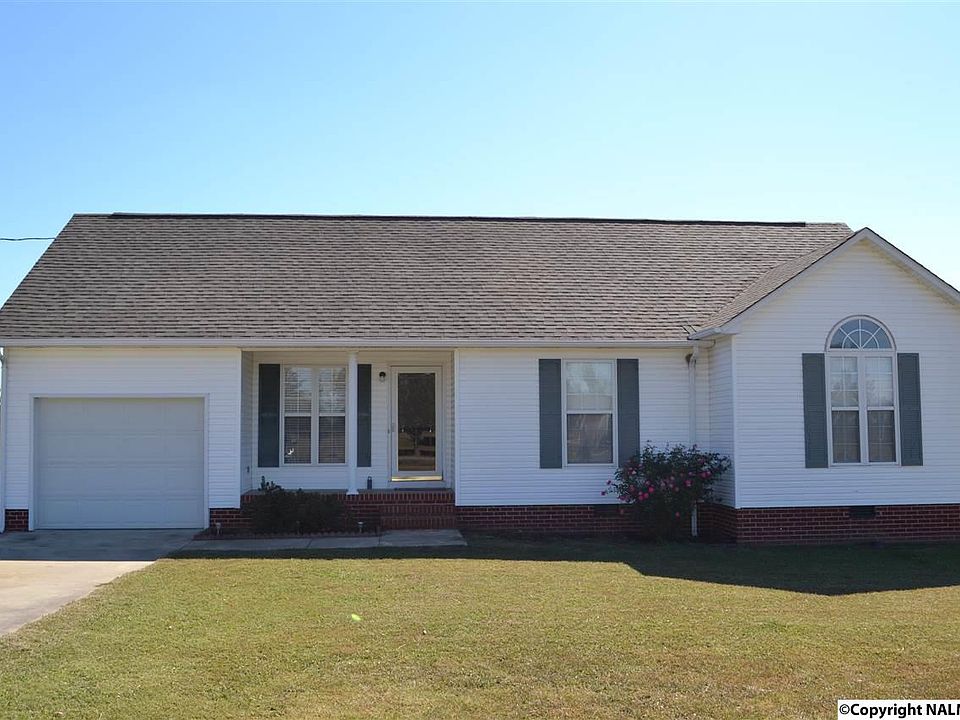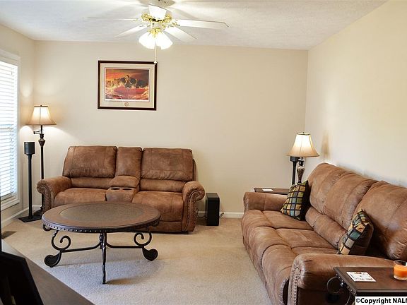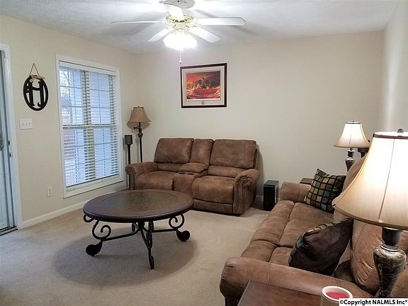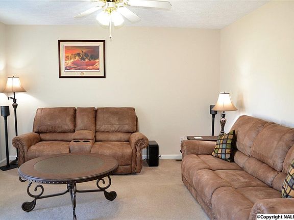 Adorable home offers 3 bedrooms and 2 full baths. Nice family room with ceiling fan and carpet. Separate dining room with french doors leading into a large sun room with new new unit and covered patio. Kitchen has lots of cabinets and counter top space. Huge laundry room with lots of extra storage and new water heater. Master bedroom has ceiling fan and bath with double vanities. Sun room with covered patio area for grilling. Large yard with detached building and plenty of room for entertaining. Located right off Hwy 72 convenient to school. This is a must see!