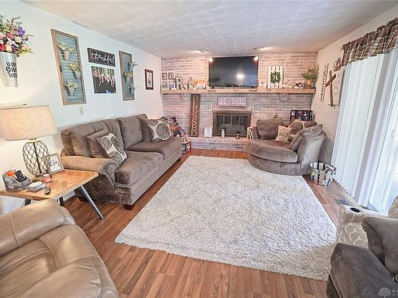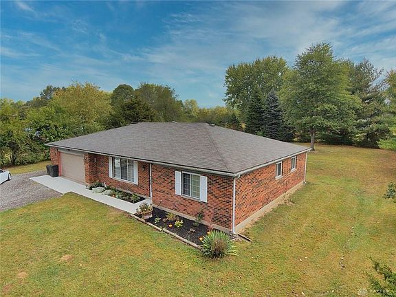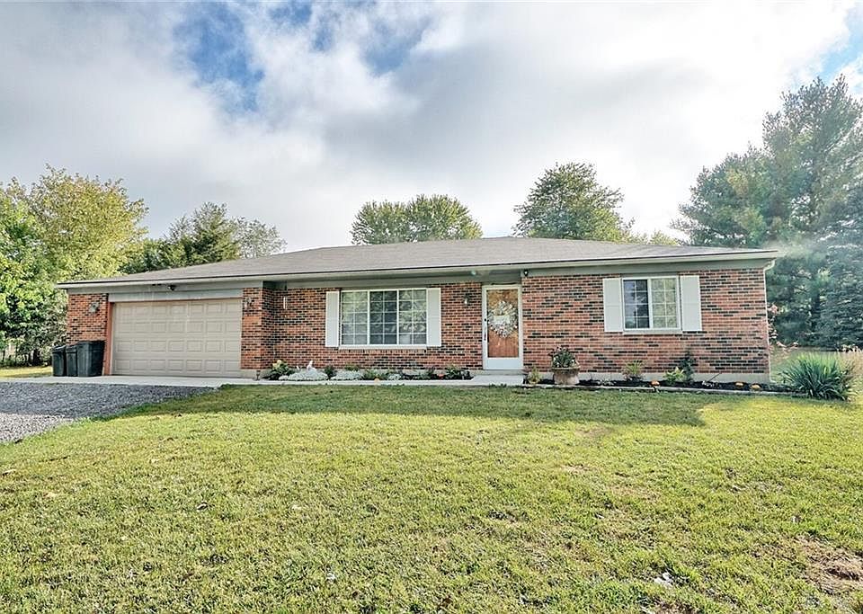 Been looking for your piece of the country? This brick ranch with three bedrooms, two full baths situated down a tree lined drive is the privacy you've been waiting on. Large master bedroom with ensuite. Tons of cabinet space in kitchen and a breakfast bar. Dining room is open to the family room with beautiful whitewashed fireplace. Sliding doors lead to the rear yard with a covered rear porch to enjoy your cookouts or morning coffee. Front room with french doors currently used as office but could be a living room. Most flooring has been updated as well as replacement windows. Furnace replaced in 2014. Miamisburg address but Carlisle schools. Don't miss your opportunity on this beautiful home.