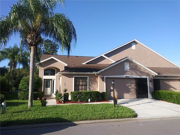 Timber Greens-Villa on Golf Course. Live & play in Timber Greens - an active 55+ community with 18 hole golf course designed by Ron Carl, 125,000 gallon swimming pool with adjacent waterfall octagon hot tub, expansive Clubhouse with dining & bar facilities housing an abundance of activities & social events, 19th Hole Bar & Grill with food and full bar service overlooking the pool, Fitness Center, movement area for line dancing, yoga, Tai Chi & Zumba, library with an array of audio & books, Card room, Arts & Crafts room, 2 LIGHTED Tennis Courts, Bocce Ball and 4 LIGHTED PICKLE BALL Courts. This MOVE-IN READY spacious villa overlooks nature & golf course. Split bedroom plan with den/office. Living room, Dining room, Family room, Glass Enclosed Lanai with own NEW A/C unit, inside Laundry Room with sink, Bonus Storage Room, attached Garage with Storage Cabinetry, Money Saver Instant Hot Water System, and NEW Water Softner. Updated kitchen features Corian Counters, NEWER Appliances & Sky Light. New Exterior Paint on this exterior MAINTENANCE FREE Villa located in a GATED COMMUNITY with Security.