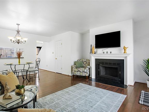 Super-cute, super-clean townhouse is ready for you to move right in! You'll love the lovely neighborhood + the peaceful, park-like outdoor space. Newer gorgeous laminate flooring throughout the townhouse - great look + easy maintenance + great for pets! White & bright kitchen has good workspace and ample storage. There's a nice pantry + the fridge conveys. There's a pass-through to the dining area & living room, which makes for great entertaining space. Spacious open area, and the gas fireplace keeps it cozy. The mounted TV conveys. Large sliders let in loads of light and lead to the outdoor entertaining/relaxing space. Private and quiet - just beautiful! 1st level powder room has been updated. Upstairs, there are 2 nice bedrooms, both with laminate flooring & ceiling fans. Mounted TV in the primary BR conveys as well as all furniture in the primary bedroom. A full bath with updated vanity & toilet can be accessed from the primary bedroom and the hallway. There's a convenient stackable washer & dryer (these convey) right by the bedrooms. Alarm system conveys. Dedicated parking spot for each unit + plenty of visitor parking close by. Excellent price point + low monthly HOA dues + lots of extras with this beautiful home! Minutes to the highway and shopping/restaurants - this is the perfect package!