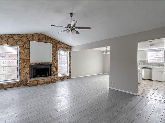 Look no further! This home in Carl Albert Schools is ready for you to come and take it! As you step inside, you are greeted by the spacious living room showcasing several windows allowing natural light to flood the space and a stone fireplace! The kitchen is open to the living room by way of a breakfast bar and features a tile backsplash, updated stainless steel appliances, and tile floors for easy cleanups! Your primary bedroom is complete with a private en-suite, including a walk-in shower. Your sprawling backyard has plenty of space for outdoor activities! You won't want to miss your chance to call this remodeled home yours! Schedule your private tour today! The seller is a corporation. Please allow up to 3 business days to review all offers.