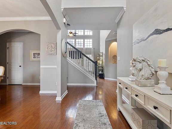 Welcome to this gorgeous 2-story brick-front home featuring 4 bedrooms, 3.5 baths, a bonus room, and a loft—offering the perfect blend of comfort and elegance! Step into the soaring foyer that opens into a breathtaking great room with towering ceilings, a cozy fireplace, and gleaming hardwood floors that extend into the dining area. The open kitchen is a chef's dream, boasting granite countertops, a tile floor, and an island with bar seating. The main-level primary suite is a true retreat with a tray ceiling, spa-like garden tub, separate shower, and dual vanities. Conveniently, the laundry room is also on the main level. Upstairs, you'll find three additional spacious bedrooms, a versatile loft, and a bonus room, ideal for a home office, media room, or playroom. Enjoy outdoor living on the covered patio, stepping into a backyard oasis that overlooks beautifully crafted rock landscaping and a private waterfall. Additionally, relax with a hot tub while enjoying the scenic views. The community also offers fantastic amenities, including a pool and clubhouse. Don't miss out on this exceptional home—schedule your tour today!