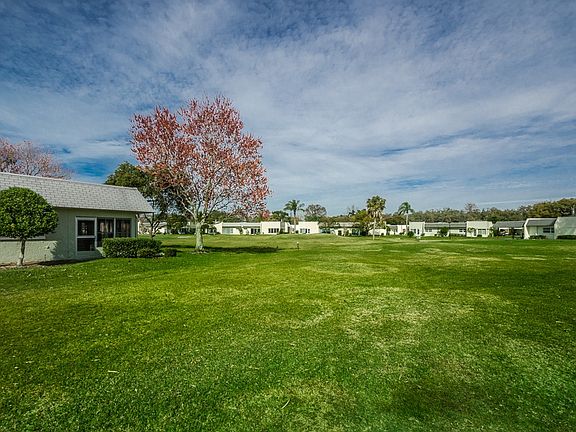 For picturesque Florida living, with all the amenities you'll ever want in beautiful New Port Richey, welcome to this corner unit, 2 bedroom, 2 bath home nestled right on the lush, Seven Springs' golf course. This sought after subdivision features a manned guardhouse and gate for that special touch of exclusivity. The home itself is edged in manicured shrubbery and boasts the perfect front patio offering spectacular views of the course. Inside, gentle sunlight floods the spacious interior and conveys all the rich greenery outside, in! A wide open floorplan allows the rooms to flow harmoniously. The large dining room is adjacent to the fabulous eat-in kitchen which presents a convenient breakfast bar. Besides a roomy pantry, the washer and dryer are conveniently stowed in the kitchen, concealed in their own closet. The living room is expansive. The center of the home, it connects the dining room to the enclosed Florida Room accessible from two sets of sliders; one set from the living room, the other from the master suite which itself includes a lovely bath with dual sinks and the must-have walk-in closet. The Florida Room's floor to ceiling vinyl windows not only give light, but the panoramic wow factor of the outstanding landscape. Fully furnished, along with the sprawling beauty of this community, the monthly fees support the grounds maintenance and building exterior, roof, trash, and water/sewer. This community also features a clubhouse, two 18-hole courses, tennis courts, a restaurant and pool.