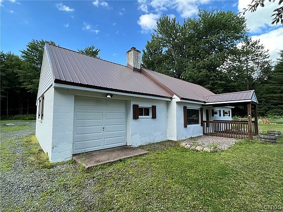 This Adirondack Country Home is calling! Secluded but not isolated charmer nestled in the midst of enchanted forest within minutes of wet & wild Moose River & thousands of acres of state lands, lakes & waterways open 365 days a year where you can pursue your favorite outdoors activities away from the hustle & bustle. Immediate access to snowmobile trails & nearby atv trail system. Square footage does not include the 2nd level that boasts over 400 square feet of finished space used for family fun and sleeping quarters. 2 BR, Dining/living area w/ woodstove fireplace, foyer/office space area, kitchen with snack bar. Attached 1 car garage with plenty of additional shop space, big covered outside area where you can host family and friends and native stone fire pit. Also includes shed and metal canopy with plenty of space for storage. Most of the furnishings stay! Ideally located nearly equal distance from the historic villages of Boonville in the Black River Valley and Old Forge in the forever will Adirondacks. Both of these country communities boast great dining, craft brewers and plenty of shops and recreation opportunities. Ideal for all year living or your Adirondack getaway!