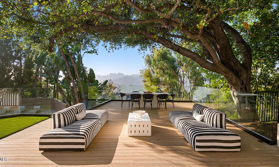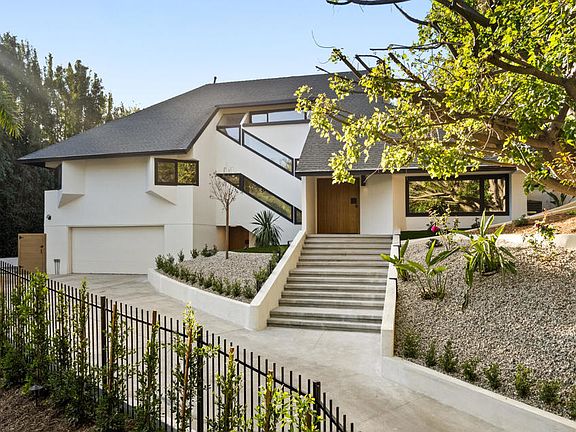 Tucked behind a long private driveway and secured by double gates, this newly renovated residence offers exceptional privacy and tranquility within the exclusive gated enclave of Oak Pass Road--an intimate Beverly Hills community celebrated for its serene setting and notable celebrity residents.Surrounded by mature landscaping and natural canyon beauty, the 4,000+ square-foot home is a peaceful retreat just minutes from the world-class shopping, dining, and lifestyle offerings of Beverly Hills. The main level welcomes you through a striking grand pivot entry door into an open, light-filled floor plan designed for gracious living and entertaining. Architectural highlights include vaulted ceilings, a central fireplace, refined custom details, wide-plank French oak flooring, and designer Spanish alabaster lighting throughout.The expansive chef's kitchen seamlessly blends elegance and functionality, showcasing striking Taj Mahal marble countertops, a center island, breakfast nook, abundant storage, and top-of-the-line Miele and Viking appliances--ideal for both everyday living and effortless entertaining.The upper level is dedicated entirely to the primary suite, a private sanctuary complete with a fireplace, balcony, walk-in closet with custom built-ins, and a spa-inspired ensuite bathroom adorned with full-slab travertine stone finishes.The lower level offers a spacious entertaining lounge with direct access to the pool and outdoor living areas, creating a seamless indoor-outdoor experience. The backyard is framed by sleek glass railings that preserve unobstructed canyon views, enhancing the sense of openness and connection to the surrounding landscape. With a private entrance, this level also includes a versatile bonus room with an adjacent bathroom--perfect for use as an additional bedroom, gym, studio, playroom, or home theater.Set within one of Beverly Hills' most coveted and tranquil gated communities, this turnkey five-bedroom, four-bathroom residence delivers a rare blend of privacy, scenic canyon surroundings, and proximity to city amenities--an exceptional opportunity to own a newly renovated home offering gated seclusion, captivating views, and an elevated outdoor lifestyle.