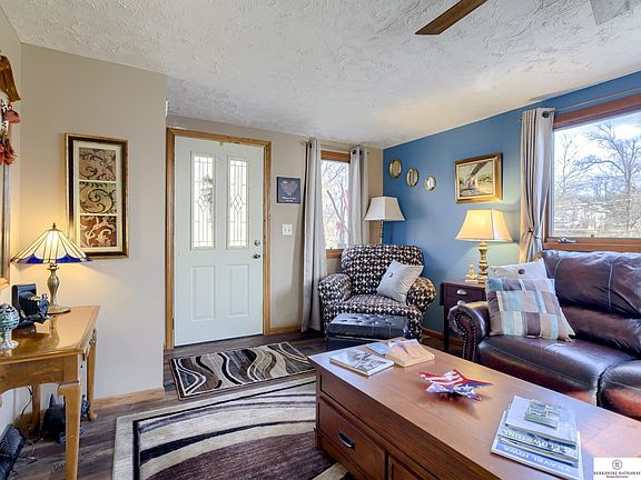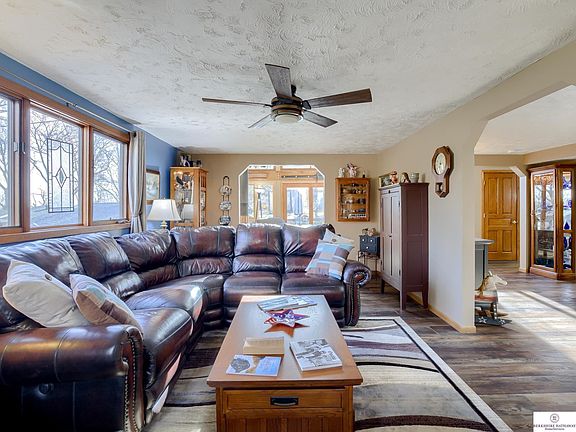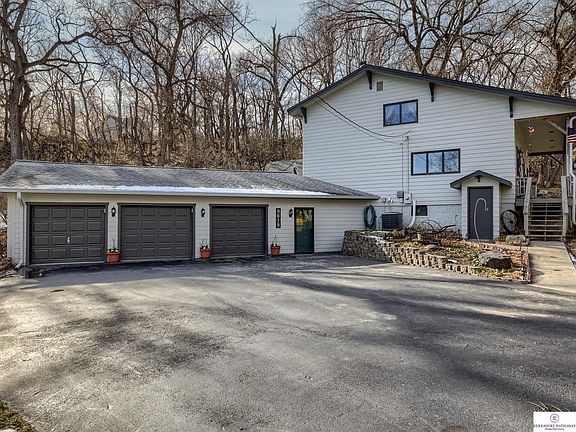 Amazing, Light, Bright, Unique Design On A Little Over An Acre Of Land W/Trees, 3 Car Garage & Shop! You Will Be Inspired By The 2 Story Wall of Windows And Wood Burning Stand Alone Fire Place! The Vaulted Ceiling In The Family Room Will Be A Delight For Quiet Evenings With The Fire Going While Reading A Book And Watching For Wild Life! A Little Touch Of Heaven On The Edge Of Omaha! Beautiful Oak Kitchen W/Breakfast Bar, All Appliances, New Flooring And More! Large Dining Room For Evening Get Togethers W/Friends And Family! Master Bedroom Has Vaulted Ceiling And French Doors Overlooking The Family Room! The 3 Car Garage Has A Separate Entry Area! There Is Another Storage Area In The Back, Besides The Heated And Cooled Shop!! Also, Main Floor Laundry Room! Pre Inspected