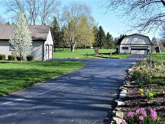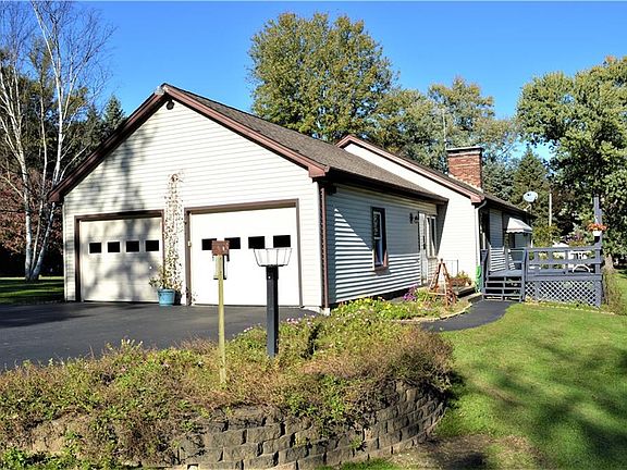 Welcome to 9619 N Lima Rd. A quality built, well maintained 3 bedroom 2 bath ranch with 2 car attached garage is searching for a family to enjoy country living with town just around the corner! Home sits on 5.45 cleared acres with a multipurpose barn/garage (40x30) with utilities, 2 stalls, loft & multiple entry/exits. This bright home offers character & charm with built-in bookcases, decorative shelving, arched doorways & cedar lined closets. Living room offers panorama views & distant peak of the Lake Club, wood burning fireplace, a separate dining rm overlooks living rm & kitchen with a glass patio doors out to the raised deck where you can enjoy all nature has to offer. Add a spacious eat-in kitchen with tons of cabinetry, plenty of counter space & handy pantry. Bedrooms offer generous closet space, updated vinyl, easy clean windows & natural hardwood floors (1 bedrm, hallway, living/dining are currently carpeted, condition of hardwood unknown.) Need more space? Head down to the partially finished basement with wood burning fireplace, a bathroom/shower, designated workshop, kitchenette for seasonal canning, walk-in fruit/storage cellar & laundry area. 1 year Home Warranty has been included for a little extra piece of mind. Call to explore this property today!