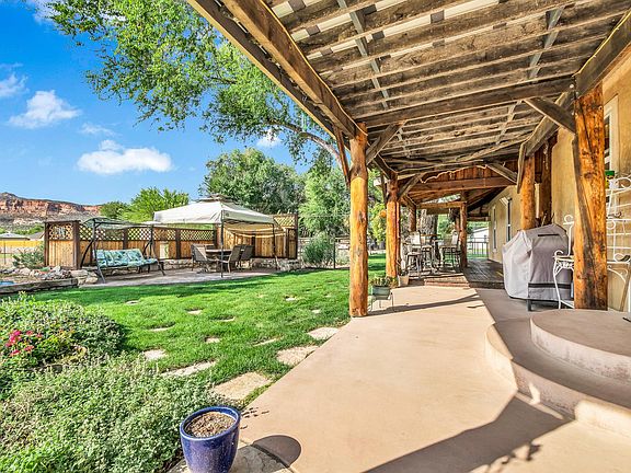 Situated on a quiet, tree-lined road, this great Fruita property sits on .61 of an acre and offers an orchard with 13 fruit trees including peaches, pears, nectarines, and apricots. Completely fenced and with a security gate, there is privacy and security. Completely remodeled in 2006, this home embodies a western adobe feel where every detail has been accounted for. The eat-in kitchen hosts a gas log fireplace, copper sink, and butlers pantry, and just off the kitchen is a large mudroom and wash area for added space and convenience. The master suite boasts its own gas log fireplace along with a spacious walk-in closet and 5 pc en-suite with jetted bathtub. This split-bedroom layout further hosts a 3rd gas log fireplace in the living room where custom entries and tall ceilings create a spacious feel. Custom stained glass windows throughout the home are an artistic touch that doesnt go unnoticed. Outside, a 32x39 shop and a 19x18 guest house along with a carport and RV amp are all added bonuses to this one-of-a-kind property!