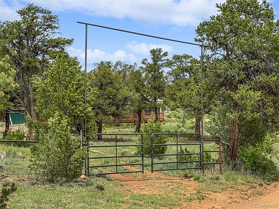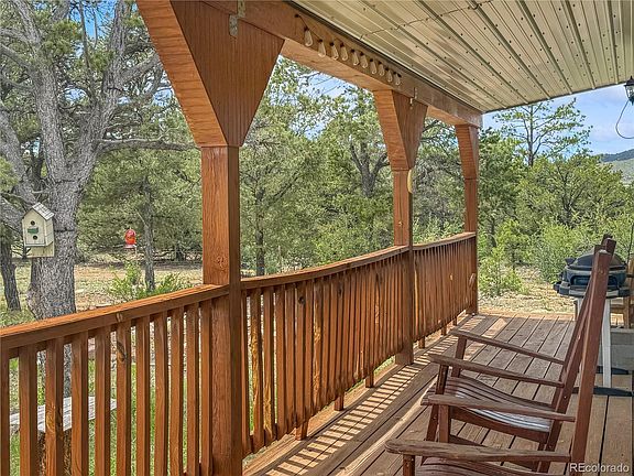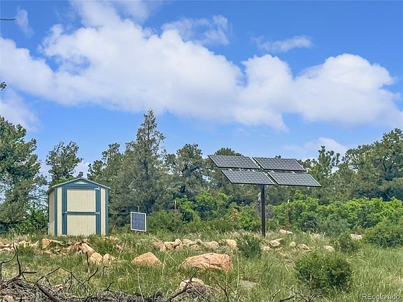 Don't miss the chance to build your dream oasis on this exceptional 6.57-acre property, featuring one existing home and two empty lots ready for construction, or enjoy more elbow room. Positioned off the beaten path, this sanctuary offers partially fenced grounds with majestic tree coverage, enchanting rock outcroppings, and towering pine trees " all set against breathtaking Colorado skies. Experience blissful mornings on the spacious covered front porch of your delightful 768 sq ft cabin. This charming abode boasts two cozy bedrooms, a full bathroom, an eat-in kitchen, and an inviting living room with stunning epoxy-coated floors requiring minimal maintenance. The cabin is well-insulated for year-round comfort. This property is an adventurer's paradise, with easy terrain that makes exploration effortless. Paired with a dependable backup generator, solar power guarantees an uninterrupted energy supply, while two buried cisterns ensure a steady and reliable water source. Fully furnished and ready for immediate enjoyment, every detail has been thoughtfully considered for your comfort. Let the sounds of nature accompany you as you bask in the panoramic mountain views