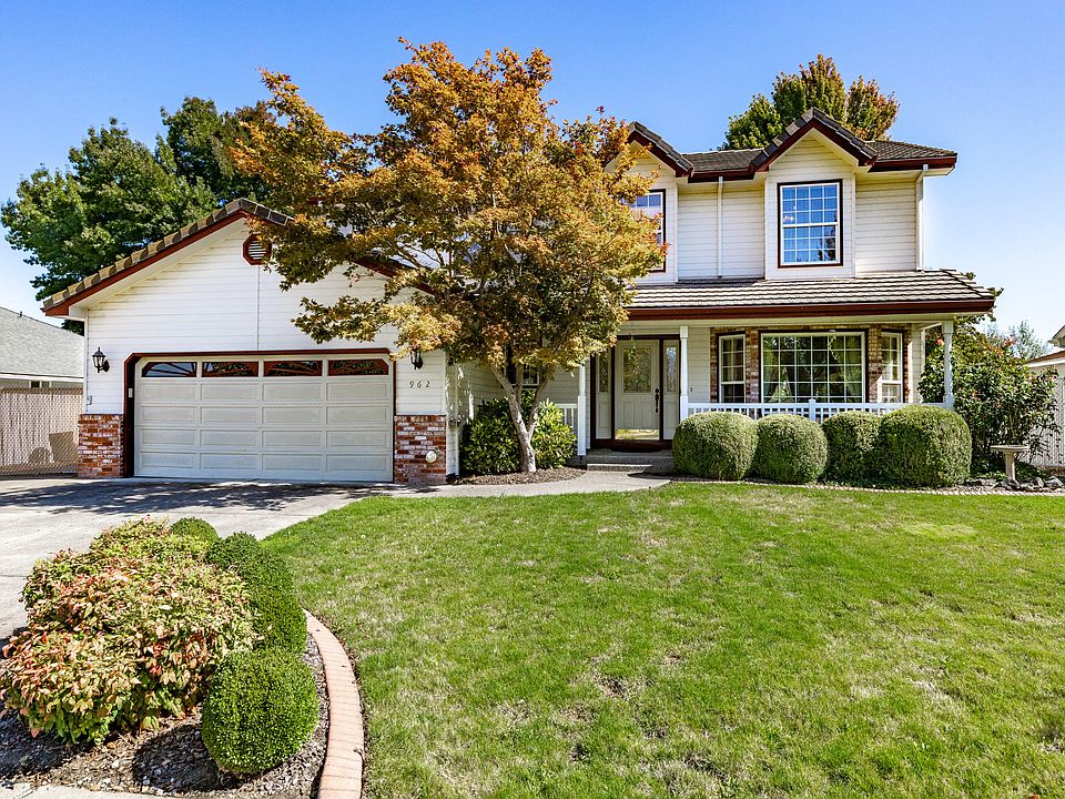 Beautiful 2,136 sqft, 4 beds & 2.5 bath home Is in the Jackson Creek Estates. Covered porch greets you before you enter the large entry w/ hardwood floors. The main level you will find a formal dining room, family room, half bath, laundry room & kitchen. Kitchen boasts a gas/range oven, hood vent, Corian countertops & soft close drawers. The laundry room has ironing board, storage & laundry chute! Upstairs you'll find the 4 bedrooms and 2 full baths. In the primary bedroom you'll find a walk-in closet, shower, jetted tub & dual vanity. Enjoy lovely back yard & nice wood deck off family room. There's plenty of parking here with a 2-car attached garage & also a detached 1 car garage/shop (24x24) in the backyard with plenty of parking in driveway & room for RV & toys in rear. Home has a tile roof. Enjoy easy access to walking trail from your backyard through the gate! Upgrades Include new privacy fencing w/solar gate opener, new water heater, new A/C unit, new range hood and stove.