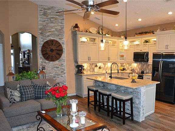 - Interior Features: Ceiling Fans(s), Master Bedroom Downstairs, Split Bedroom, Vaulted Ceiling(s), Walk-In Closet(s), Open Floorplan, Solid Wood Cabinets, Eating Space In Kitchen, Kitchen/Family Room Combo, Stone Counters, Tray Ceiling(s), Attic Ventilator