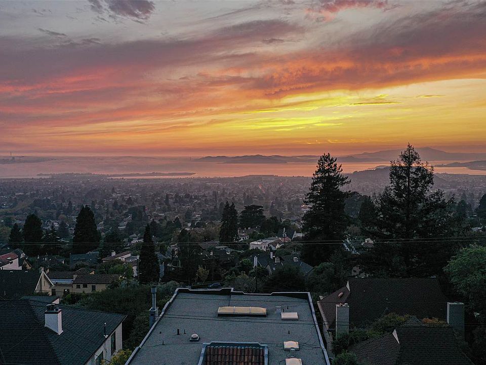 If your dream home is in the Berkeley Hills & features panoramic views of the Bay, you must see this house! The main level includes a living room w/gorgeous, large windows that perfectly frame your unobstructed views. A wood deck connects to your living room, dining room & breakfast nook. There is also a sitting room w/a built-in couch & fireplace, as well as one full bedroom suite. The second level includes the master bedroom, which features a walk-in closet & a spa-like master bath w/an oversized jet tub. Two additional bedrooms, a full hall bath, sauna, laundry room & large storage space complete the 2nd level. Finally there is a large unfinished basement w/separate access that could be your next art studio, home office or au-pair. This space opens up to the backyard, which features a private sitting area under a canopy of oak trees & an old stone fireplace. You are walking distance to the top-rated Cragmont Elementary. Don't miss this amazing home with sweeping views of the Bay!