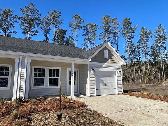 Meet the Palmetto duplex villa in Nexton's easy living, low maintenance, active adult community - Hammock Walk! This home offers two bedrooms and two bathrooms all on one level. This home features our extended family room upgrade with a gourmet kitchen, featuring 42'' white cabinets, quartz countertops, designer backsplash, gas cooktop, wall oven and microwave, hood vent, beautiful hardware and accent lighting. The private covered back porch and large windows in the primary bedroom overlook the beautiful wetlands. Hammock Walk features many amenities including future pickleball courts, a dog park, and nature walking trail! Ready March 2025