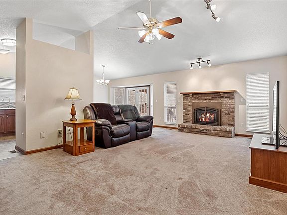 Stunning ranch home w/ all brick frt, 3 car os garage, 3 bedrms, 2.5 bathrms, fin walk out LL. HW flr entry foyer brings you into the open to cathedral ceiling great room with beautiful brick gas fireplace that is flanked by windows, ceiling fan & open stairs to the LL. Kitchen updates include ss appl (fridge is included) granite countertops, tile backsplash, bar area. BF rm has a bump out that leads to the covered 18X 14 deck & 25X10 patio. Master bedrm suite features large walk in closet and completely updated master bathrm w/ tiled shower w/ doors, dual sink vanity, laundry sht, & extra cabinets for storage. 2 additional spacious bedrooms and an updated hall bathrm complete the mf. Finished w/o LL has huge rec/family rm, bathrm, closets for storage & a poss sleeping rm. Utility room has laundry (2 washers & dryer are incl.) walk in closet, shelves for storage. 3 car garage is os w/ LED lights, w/ 27 ft deep. Newer arch roof w/ ridge vent, & HVAC. SPOTLESS MOVE IN READY!!!