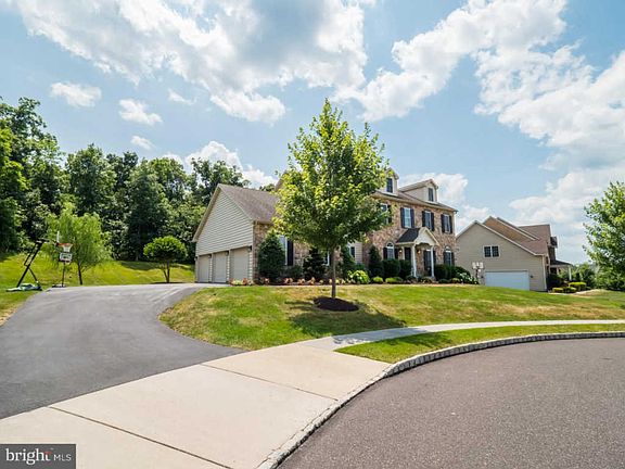Welcome to the Enclave at the Lederach Golf Course-a subdivision of the course that provides you with a quiet and private setting. 962 Gallery Drive is a 4 bedroom, 2 full, 2 half bath Colonial situated at the end of a cul-de-sac making it a prime location. Beautiful landscaping with colorful blooms lead you to the main entry and two-story foyer with gorgeous hardwood floors and enhanced wood trim including dental molding and grooved wainscoting. The large foyer area hosts a closet and powder room and leads to the kitchen and living room. The kitchen boasts an eat in kitchen with casual dining area, granite island that seats 4, granite counters, stainless steel applicances, subway tile backsplash, tile floors and an abundance of cabinet space. Access to the Trex deck with pergola makes dining al fresco and entertaining a breeze. Stairs off the deck lead to the spacious backyard. Beyond the yard is designated township open space. The living room is spacious and cozy with a gas fireplace. The dining room is currently being used as a play space and features white wainscoting. The whole main floor has many windows and plenty of natural light. A office is laid out on the opposite side of the dining room with french doors and pocket doors allowing for privacy. Upstairs a landing can provide a quaint sitting nook and connects fours bedrooms and two full baths. The master suite includes a customized walk-in closet and pocket door access to the laundry room. With dual vanities, a garden style jetted-tub with a view, and separate step-in shower with glass doors, linen closet and water closet complete the en suite bath. Three additional bedrooms are all nicely sized, have double closets with bi-fold doors and great light. The tiled common hall bath features double vanity, full size tub and a window. Adding a casual entertainment mecca the lower level enjoys a full bar with concrete top, fridge and sink, Edison bulb pendant lighting and barn doors covering powder room and storage areas. An accent wall of whitewashed shiplap beautifies this space and carries over to the bar. The gated deck with pergola has a retractable awning as it overlooks the manicured yard with landscape beds and patio area that creates the perfect grilling spot. Open skies and a tree-lined view will add to the relaxation factor your outdoor living area provides. Call today to schedule your private tour of move-in ready 962 Gallery Drive.