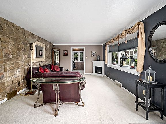 Beautiful stone cap cod on corner private lot. Prime location next to the Library/Police and Wilson Park/Swimming pool. Huge fenced in backyard w/shed and wooded for privacy, built in gas grill and covered back porch for all your entertaining. 3 bed with one bedroom on main floor. Den/office on main floor adjacent to the family room that offers tons of natural light and bay window. Half bathroom also on main level. Hardwood floors under carpets. 2 large bedrooms upstairs with updated full bath. Updated kitchen with breakfast nook, stainless steel appliances. Newly remodeled finished basement. Full bath and amazing laundry room. Fruit cellar and 1 car garage. This beautiful stone home has so much charm and character. A true green tree Gem. Close to everything.