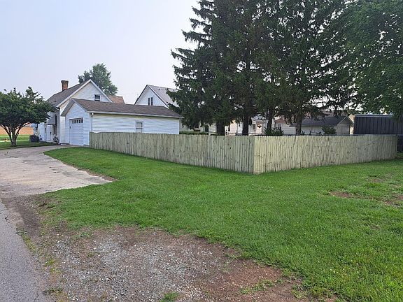 Two story home, 3 bedrooms, 1 bath with 1592 SF, New F/A gas furnace & C/A, New windows on 1st floor, large eat in kitchen w/ counter bar, wood cabinets, stove & refrigerator stay, large dining & living Rm, 1st floor bedroom w/walk in closet & adjoins bath, 2nd floor has 2 bedrooms & Rec, Rm, sets on corner lot, 24 x 22 Detached garage w/opener, concrete floor & electric, large fenced in backyard, covered front porch & rear patio, ample off street parking, across from grocery & church.