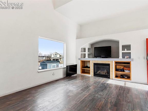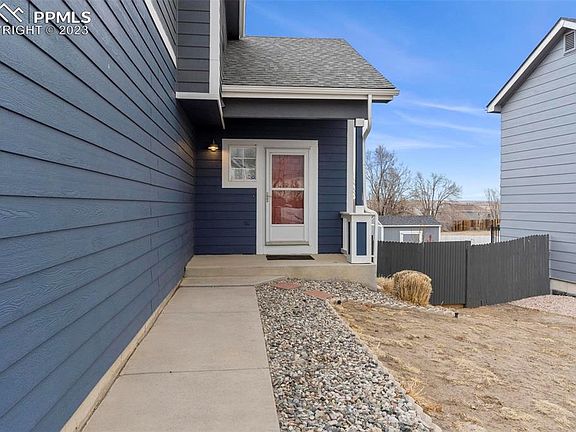 Single Family Home close to Fort Carson! The main level features an open, modern floor plan that boasts spacious vaulted ceilings, elegant light fixtures, & a flowing open concept floor plan. Enter from the covered front porch into the welcoming great room, complete with vaulted ceilings, custom built ins, & a picture window looking out onto your backyard oasis. Natural light softly sifts through the skylight into the upper loft and family room below. The family room flows into the dining area and spacious kitchen with additional bar top seating. Plenty of cabinet space to stow away kitchen gadgets, as well as a sliding barn door pantry. The kitchen is ready for move in with all appliances included. Walkout from the dining area through the french doors to the wood deck, complete with a gas valve and gooseneck accent lighting for serving up backyard BBQs. Enjoy the privacy of a huge fenced in backyard abutting a cul-de-sac. Ample space to garden, dine, & entertain. Auto sprinkler system takes care of watering for you. Modern LVP flooring expands from the main level, up the stairs, onto the second floor loft area. This space is ready to serve as your reading nook, house plant gallery, or home office. The spacious primary bedroom is fit with a walk-in closet & adjoining double vanity bath. Bedroom two fit with south facing windows and views of Pikes Peak. Bedrooms are equipped with smart lights and ceiling fans for those cool summer nights that just might take precedent over AC. The Air Conditioner, Central Heat, & Humidifier are but a switch of the thermostat away to regulate home temps to your liking. In the basement, an additional 707 SqFt of potential awaits. Laundry hookups with included washer & dryer, garden level windows & blinds, & rough ins awaiting your vision & equity building potential. Oversized attached 2 car garage with built ins and space for a workshop, leads to second entryway into home, coat closet & tucked away half bath. Welcome home!