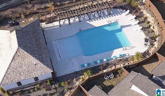 In the primary bathroom, you'll find separate raised vanities with under-mount sinks, a spacious tile shower, and a private commode closet. The deck at the back overlooks the pool and cabana areas, providing a great outdoor space. Blinds are included throughout the house.