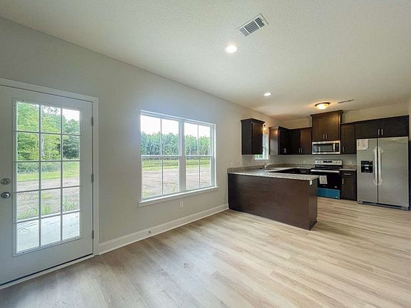 Rebecca plan centrally located in Cherokee Station of Hinesville! Minutes from the Ft. Stewart main gate, just down the road from local shopping & dining! From the front porch entry step into the Rebecca plan! The dining room lies just adjacent to the foyer with chandelier & kitchen access. The kitchen also features granite counters, stainless appliances & a large breakfast area! The family room is situated just off the breakfast area, complete with a fireplace. Upstairs find 3 bedrooms (all with walk-in closets), hall bath with granite counters, laundry room & master suite! Master features vaulted ceiling, 2 walk-in closets & private bath with soaking tub, shower & dual vanity with granite counter.