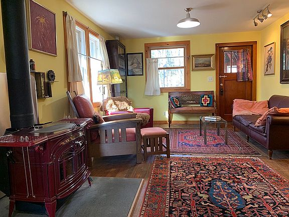 Somewhere over the rainbow! This cozy, sunny cottage in the woods has beautiful views of Millbrook Mountain and the Hudson Valley and includes 2 parcels. Chef's kitchen tiled in Carrara marble with a marmoleum floor has a Blue Star range, Fisher Paykel refrigerator and a Bosch dishwasher. There is a fireplace of Tennessee marble and an Encore wood-burning stove from Vermont Castings (1 year old). The master bedroom includes a built-in window seat with a cedar-lined interior for storage. The first floor bathroom is tiled in slate. Hardwood oak floors throughout except the master which has bamboo flooring. The master bath includes a claw-footed tub for two. The house has a partial basement (perfect for storing wine) with a washer and dryer. There is a blue-stone terrace overlooking the Hudson Valley. The sale includes the parcel with the house of 1.3 acres and a 3.04 acre adjacent parcel. The separate one car garage is currently used as a home-gym and the two-story out building includes a workshop and storage. There is a wood shed on the adjacent parcel. The garage, the workshop and newer portion of the home all have metal roofs. This escape from the city is only 75 miles from Manhattan. The Mohonk Preserve is two miles down the road and Minnewaska State Park Iies just 3.5 miles away.