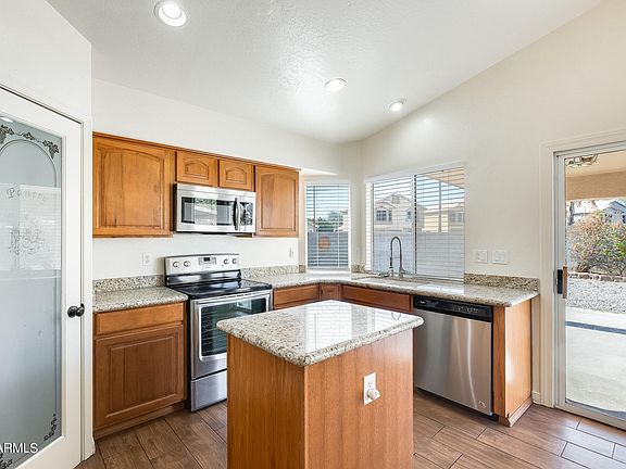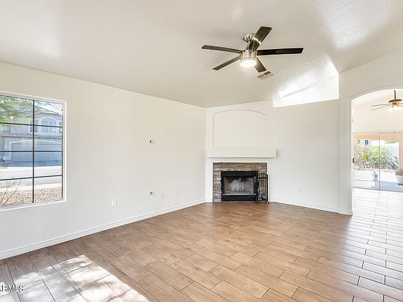 This inviting 3-bedroom, 2-bathroom corner lot home is nestled in a tranquil community, offering comfort and convenience. The living room features a cozy fireplace and vaulted ceiling, as well as large windows that fill the space with natural light. The primary bedroom includes a walk-in closet and full ensuite bathroom for added privacy. The kitchen boasts granite countertops, a walk-in pantry, a kitchen island, an eat-in area, and plenty of cabinets. Step outside to a covered patio overlooking a spacious grassy yard. Conveniently located near the 202, 101, I-10, and US-60 freeways, this home is close to excellent schools, Chandler and San Tan malls, parks, and more, making it an ideal choice for comfortable living.