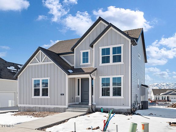 Heber living at it's finest! Come see this beautiful brand new 2100 Farmhouse 2 story surrounded by private parks and trails! This home features a huge kitchen with quartz counters, stylish gray laminate cabinets, tile backsplash and stainless steel gas appliances. Also featured in this home you will find laminate hardwood flooring, 2 tone paint, a gas log fireplace in the great