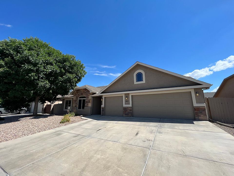 Large open floor plan is close to parks and trails. The kitchen is larger than average with a wrap around bar and gas range. The dining room can easily seat your gathering and the living room is central in this open floor plan home. The main bedroom enjoys a walk in closet and a 5 piece bathroom. There is a 3 car garage for your vehicles and storage along with a double wide gate next to the garage. The low maintenance yard frees your time for enjoying all of the recreation opportunities that Western Colorado offers. Listed pets are acceptable, NO barking, NO smoking. Property manager pays HOA fees Real Estate taxes Tenant pays utilities, renters insurance(if desired) Comply with neighborhood covenants.