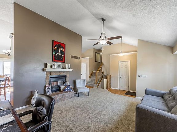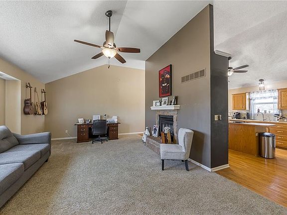 - Features: Carpet, Ceiling Fan(s), Fireplace
