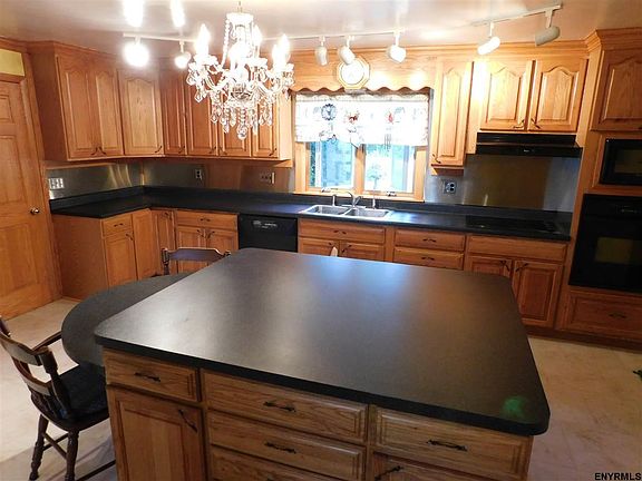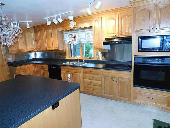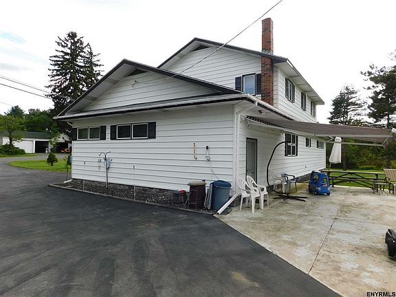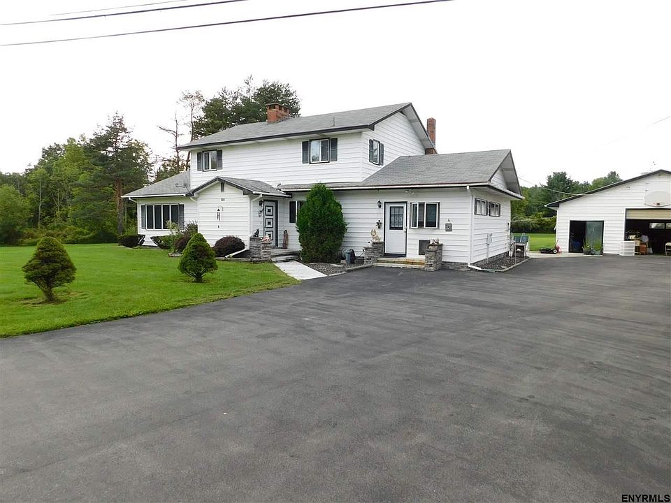 Two Story Colonial offers an abundance of space for a growing and/or expanded family! 1st Floor master bedroom w/HW flrs plus 4 bedrooms up with hardwood floors, 2 full baths, Situated on 2 acres with beautiful Catskill Mountain Views! Large Kitchen open to Dining Room, Large Livingroom w/Brick firepl. Great home office setup for an entrepreneur needing separate entrance; oversized garage with a loft and enclosed porch- suitable for 5 cars! Lots of storage everywhere! Newer furnace and roof!