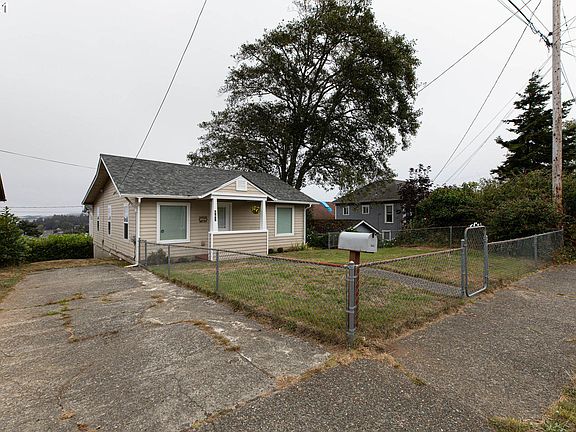 Enjoy this charming cottage in North Bend! Clean and Fresh. Includes fenced front yard, clawfoot tub, hardwood floors, and plenty of storage under house. Primary bedroom has a bay, dunes, and railroad bridge view. Southern exposure. Seller credit or price decrease of $1,000 for carpet replacement plus Buyer note this in their offer. Roof is both membrane and composition.