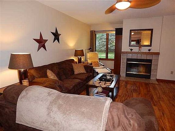 You will be pleasantly surprised how wonderful this condo looks. Backs to trees, opens up to open grass and trees as well. Newer laminated wood flooring, updated light fixtures. Newer appliances in kitchen. Washer/dryer stay. Fixtures changed out to be silver. Water Heater new 2012. Fireplace is wood burner. Private Deck. Drapes Reserved.
