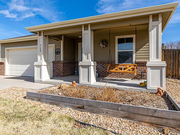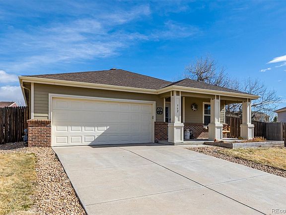 Home, sweet home! This is your chance to become the proud owner of this beautiful property in Highplains at the end of a private cul-de-sac. You will be greeted by an inviting front porch, perfect for enjoying relaxing evenings and neighborhood views. Explore inside to find a bright open floor showcasing wood-look tile flooring, recessed lighting, and a fresh, soothing palette, providing a harmonious ambiance throughout. Entertain your guests in the relaxing living room. The well-appointed kitchen boasts stainless steel appliances, wood cabinetry, a convenient pantry, stylish tile backsplash, a porcelain sink, butcher block counters, and a peninsula complete with a breakfast bar, great for quick coffees and snacks in the morning. The primary bedroom features plush carpet in all the right places, a generously sized closet, and a private bathroom equipped with dual sinks for added comfort. The laundry room includes built-in cabinets for extra storage. Discover a spacious backyard offering a cozy open patio and picturesque blue skies, ideal for relaxation, dining, or hosting fun gatherings! Minutes away from other parks, schools, and more! What are you waiting for? Create new memories in this fantastic home! Just minutes to Brighton Prairie Center, close to shopping and dinning, and Interstate 76, E470 for an easy commute.